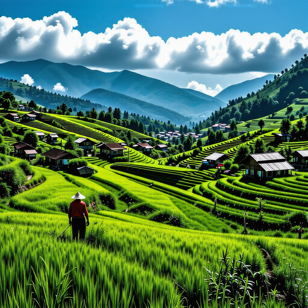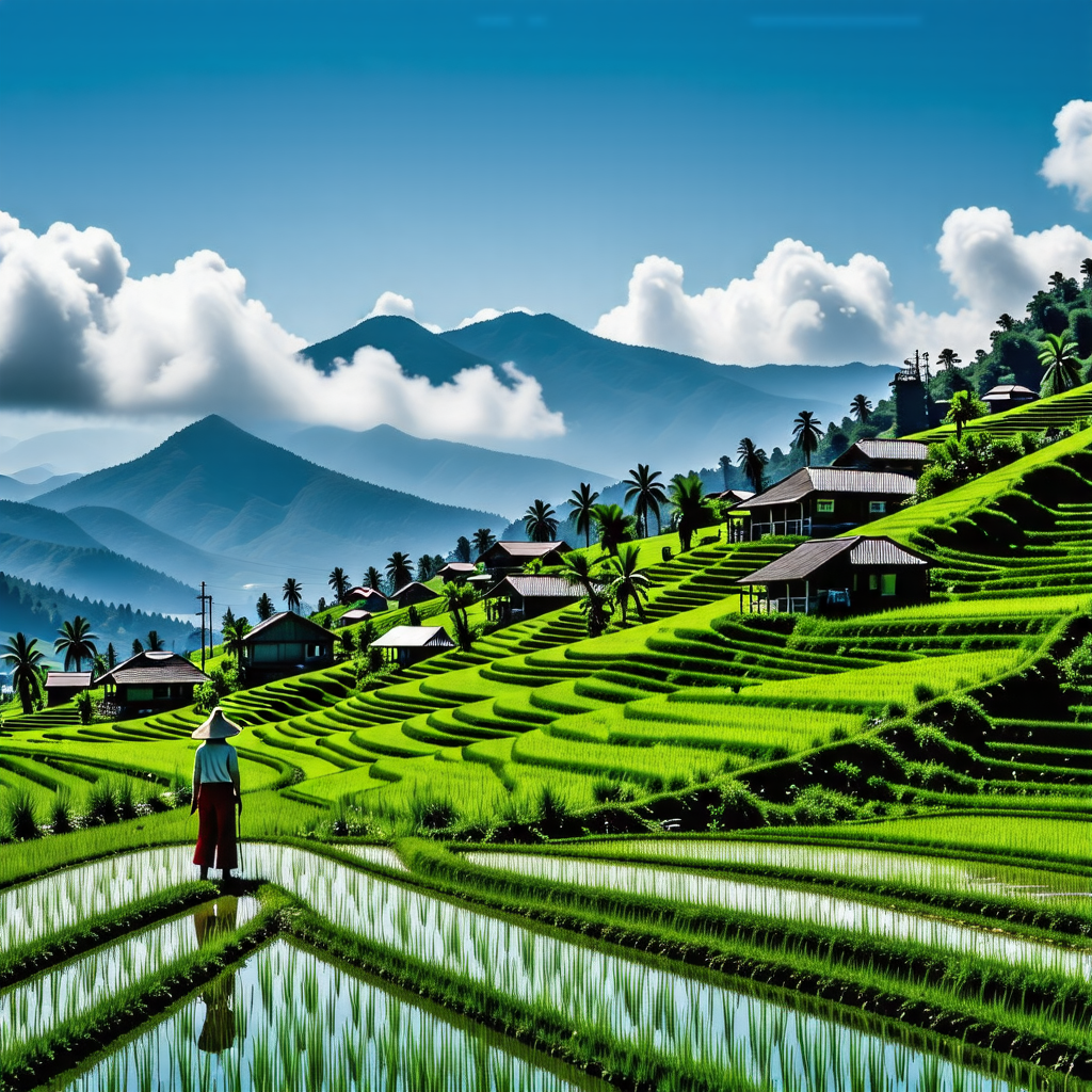 • 특징: 끝없이 펼쳐진 계단식 논과 흐르는 하천이 어우러진 평화로운 풍경.