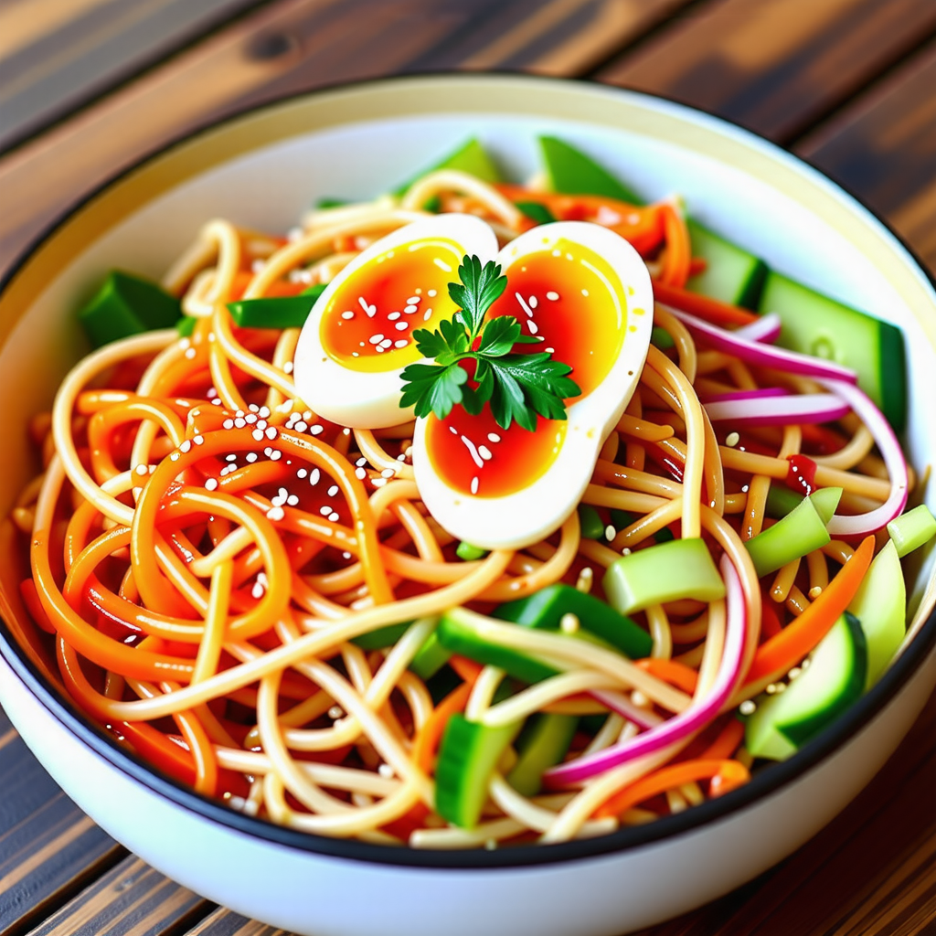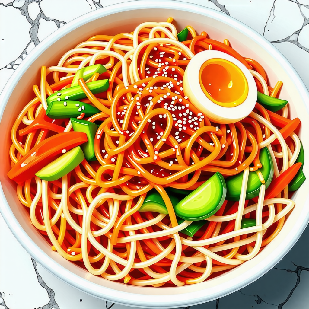 - 고명 올리기 : 비벼진 국수 위에 삶은 달걀을 반으로 잘라 올리고, 참깨를 뿌려 마무리합니다.
